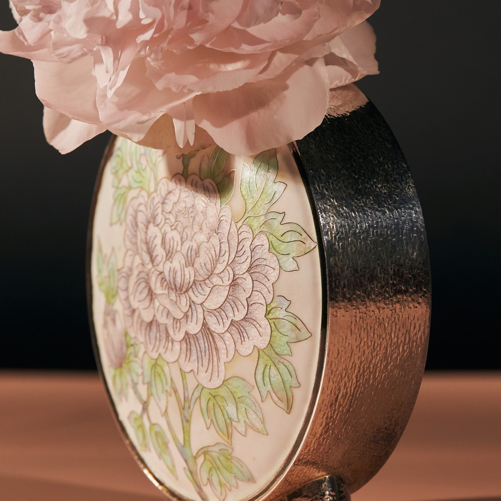 일곱가지 보석을 의미하는 칠보. 수많은 시도 끝에 최상의 색 배합과 온도를 찾아낸 전통의 손길이 담긴 채율의 은칠보 편병입니다. 정교하게 세공된 은에 담겨진 칠보의 남다른 영롱함은 우리가 생활하고 있는 공간에 놓여질 때, 더욱 감도 있는 작품으로 다가옵니다.