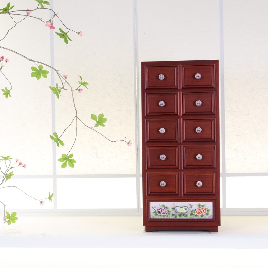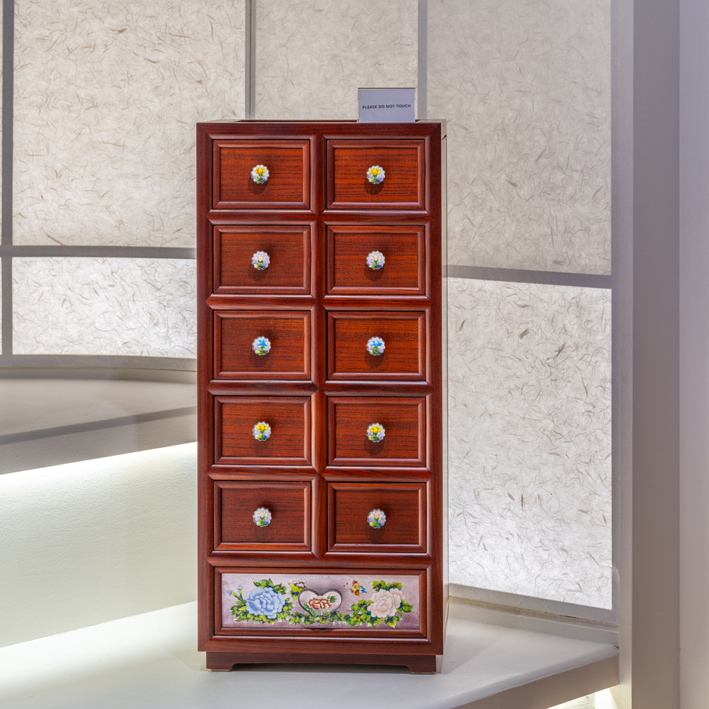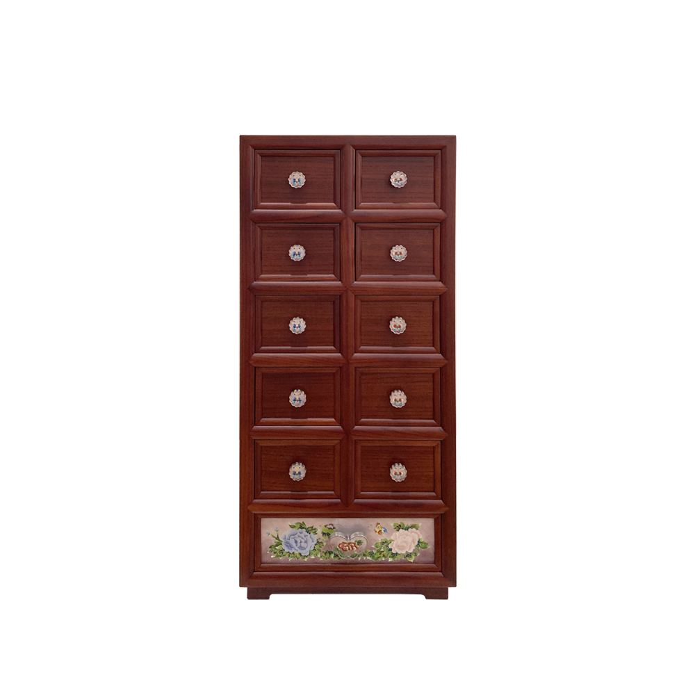 모란꽃 옻칠 좁은약장 6단 생칠 Peony Ottchil Narrow 6-Tier Apothecary Cabinet