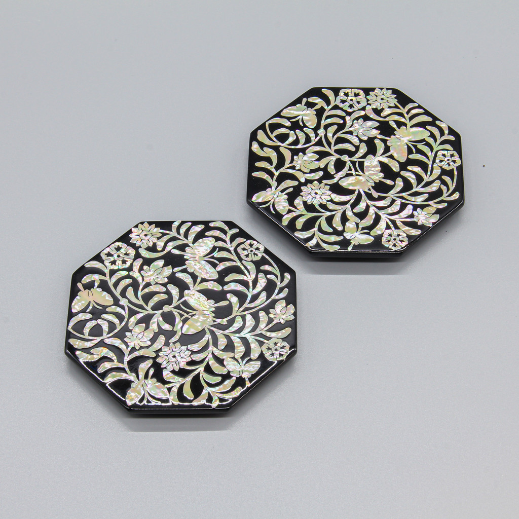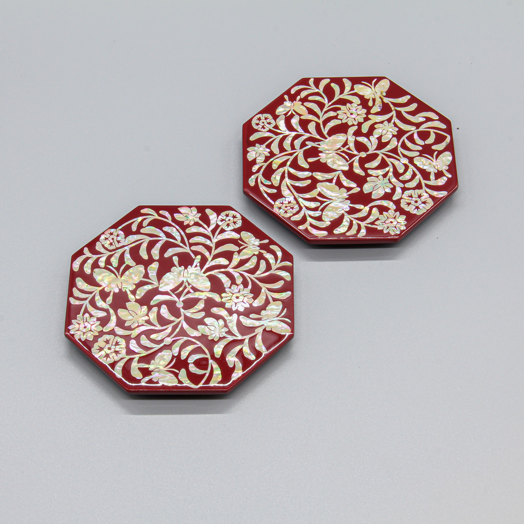 나비당초 나전 팔각컵받침 세트 (2pc set)