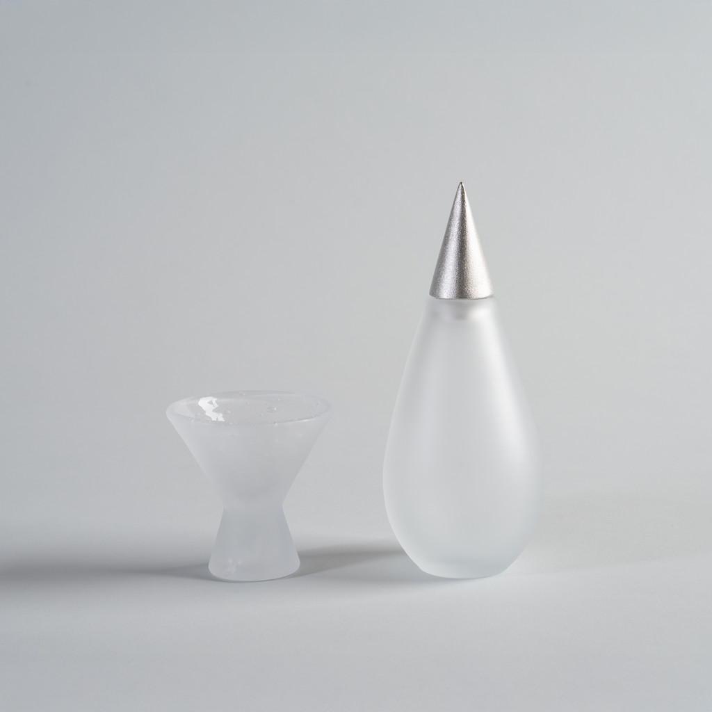 ⊙ 유리 블로잉 기법으로 제작된 이 찻잔은 촉촉하고 고요한 다원의 풍경을 담아내고 싶었는데요. 외관의 표면만 반광 처리를 하여 마치 옅은 안개가 낀 포근한 느낌을 주었고, 안쪽은 깨끗하고 투명한 이슬이 맺힌 듯 상쾌하게 표현하였습니다.