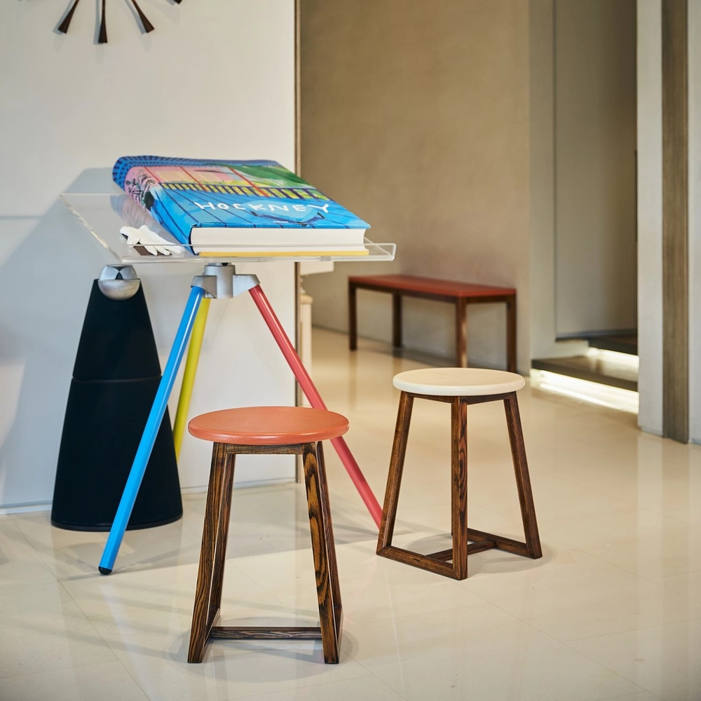 This lacquered stool brings together the natural texture of hemp cloth and Cheyul's delicate artistic sensibility. By blending refined transparent lacquer with fine natural stone powder, it presents a mysterious depth of color.