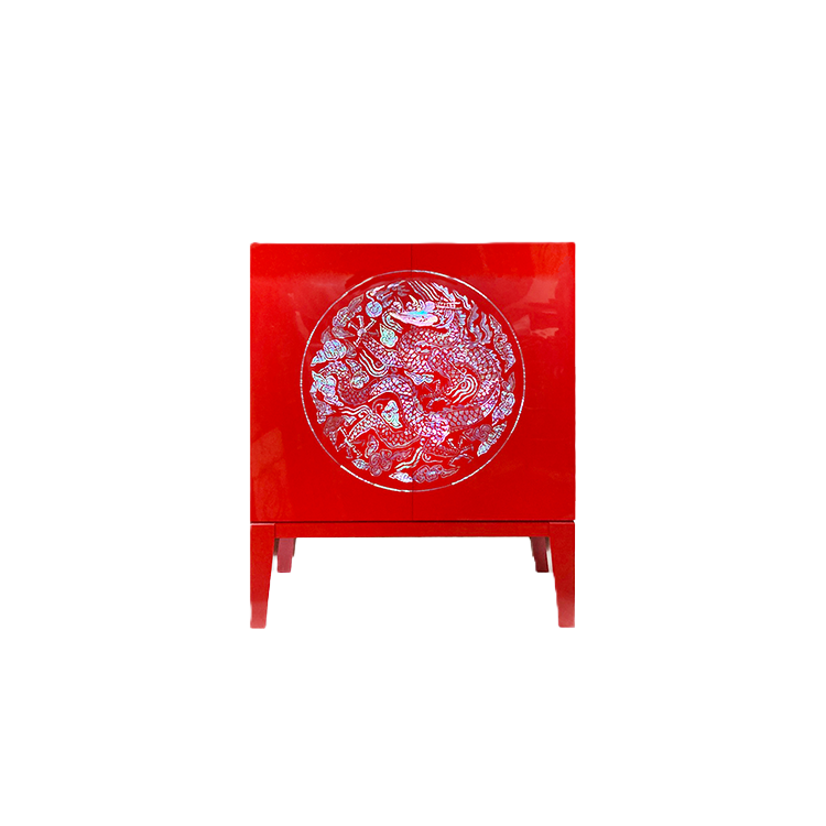 왕의 용포인 곤룡포에 수 놓는 용 무늬로, 발톱이 5개인 용을 상징합니다. 한국에서 주칠은 왕실의 권위와 부를 나타내는 상징적 의미를 지녔으며, 주로 궁중가구나, 고급가구에만 사용이 되었습니다. 채율의 오족용 주칠 협탁은 전통 왕실의 붉은색을 현대적으로 재해석하여 강렬한 멋과 푸른 빛이 감도는 자개로 화려한 미를 조화롭게 표현한 작품입니다.