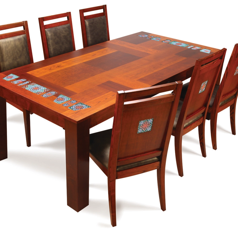 자연 그대로의 나뭇결이 돋보이는 백수백복 생칠 식탁은 복을 누리며 행복하게 장수하라는 의미의 백수백복 문양의 화사한 칠보와 깊이 있는 옻빛이 조화를 이루고 있는 작품입니다. 옻나무에서 채취한 수액을 사용하는 옻칠 작품은 내구성과 내열성이 강하여 반영구적 사용이 가능합니다. 특유의 빛깔과 광택이 우수할 뿐 아니라 부드러운 질감과 좋은 향이 특징이며 시간이 지날수록 옻빛을 발하는 아름다운 유산입니다.