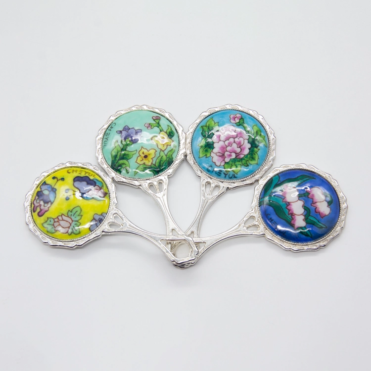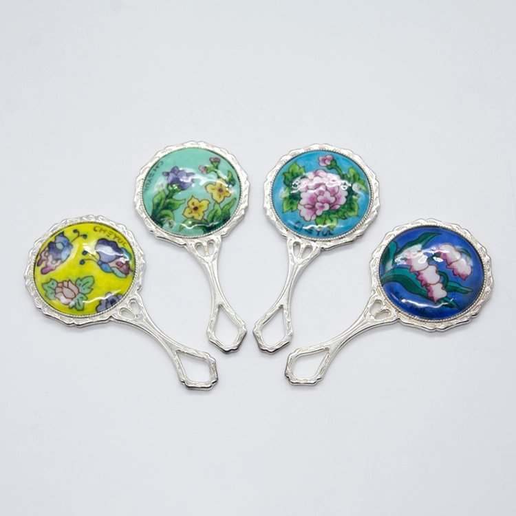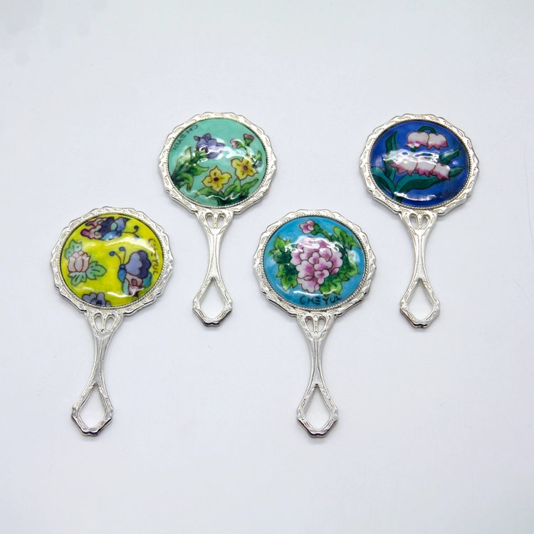 은방울꽃 동칠보 손거울 하늘색 Lily of the Valley Copper Cloisonné Hand Mirror