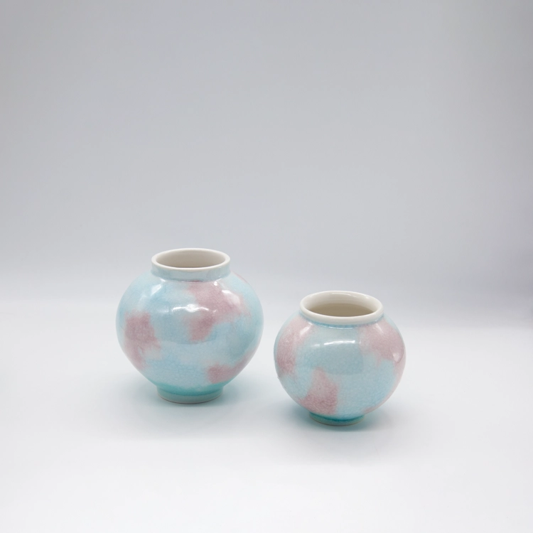 칠보 도자 기법으로 표현된 균열 틈 속 보석같은 반짝임은 마치 별빛이 흩어진 듯한 아름다움을 선사합니다.  차가워 보일 수 있는 빙열 문양을 채율만의 따뜻한 하늘 빛으로 표현한 작품으로 달 항아리가 주는 한국의 아름다운 곡선이 특징입니다. 디퓨저, 화병, 오브제로 다양한 활용이 가능합니다.